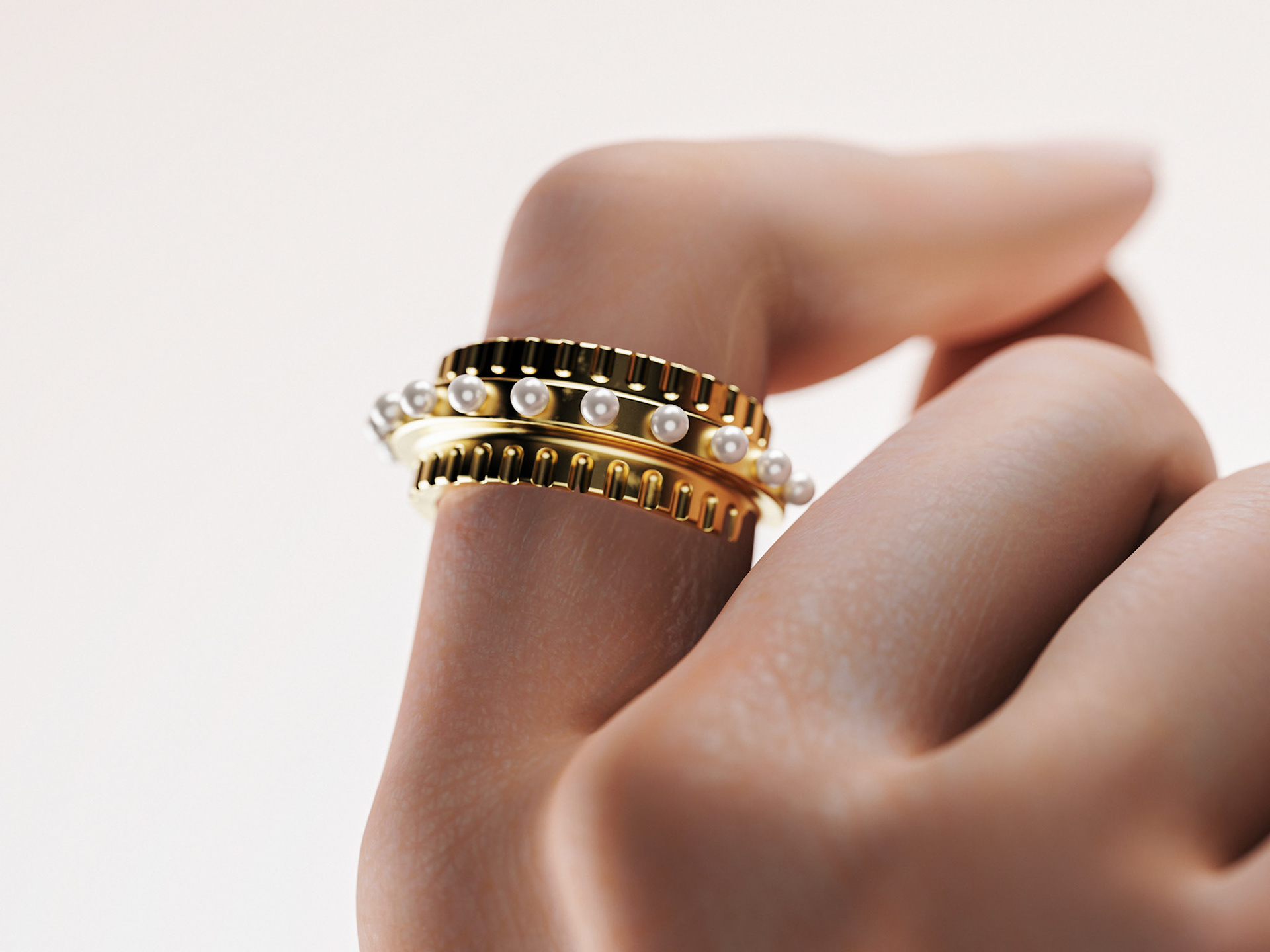 Découvrez la déclinaison en bague du bracelet ARGONIS, une création élégante qui marie subtilement l'or jaune et les perles. Ce modèle se distingue par son ouverture à la base, offrant ainsi une flexibilité optimale pour s'adapter confortablement à différentes tailles de doigt.