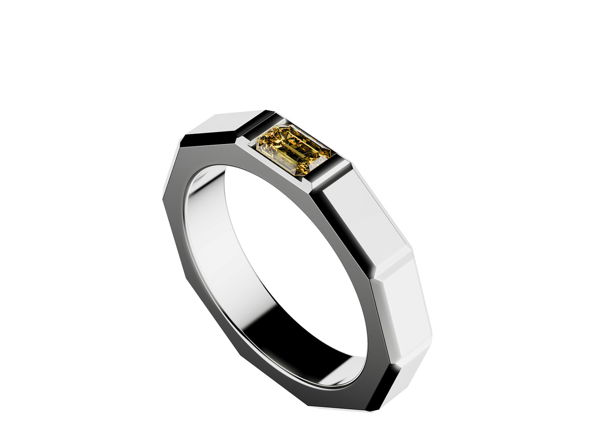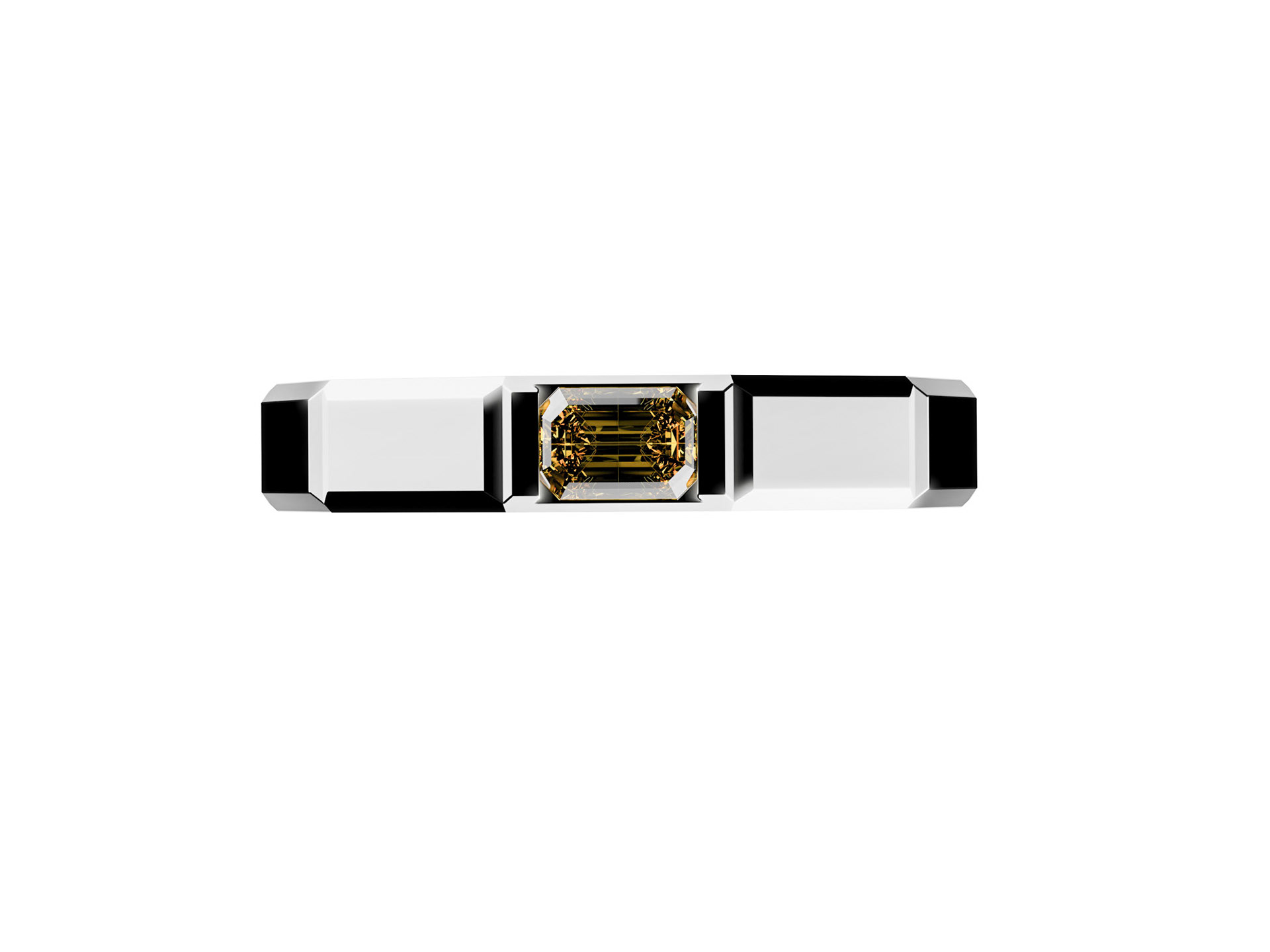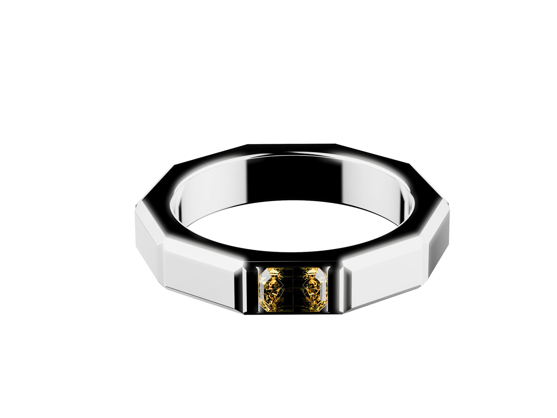 DIALECTRA, bague en titane sertie d’une pierre de centre de type rectangle en sapphire et/ou en topaze.