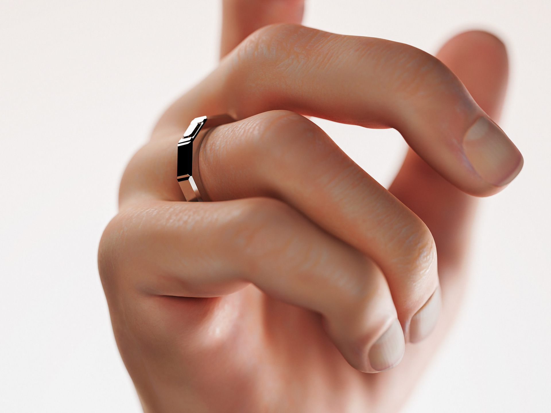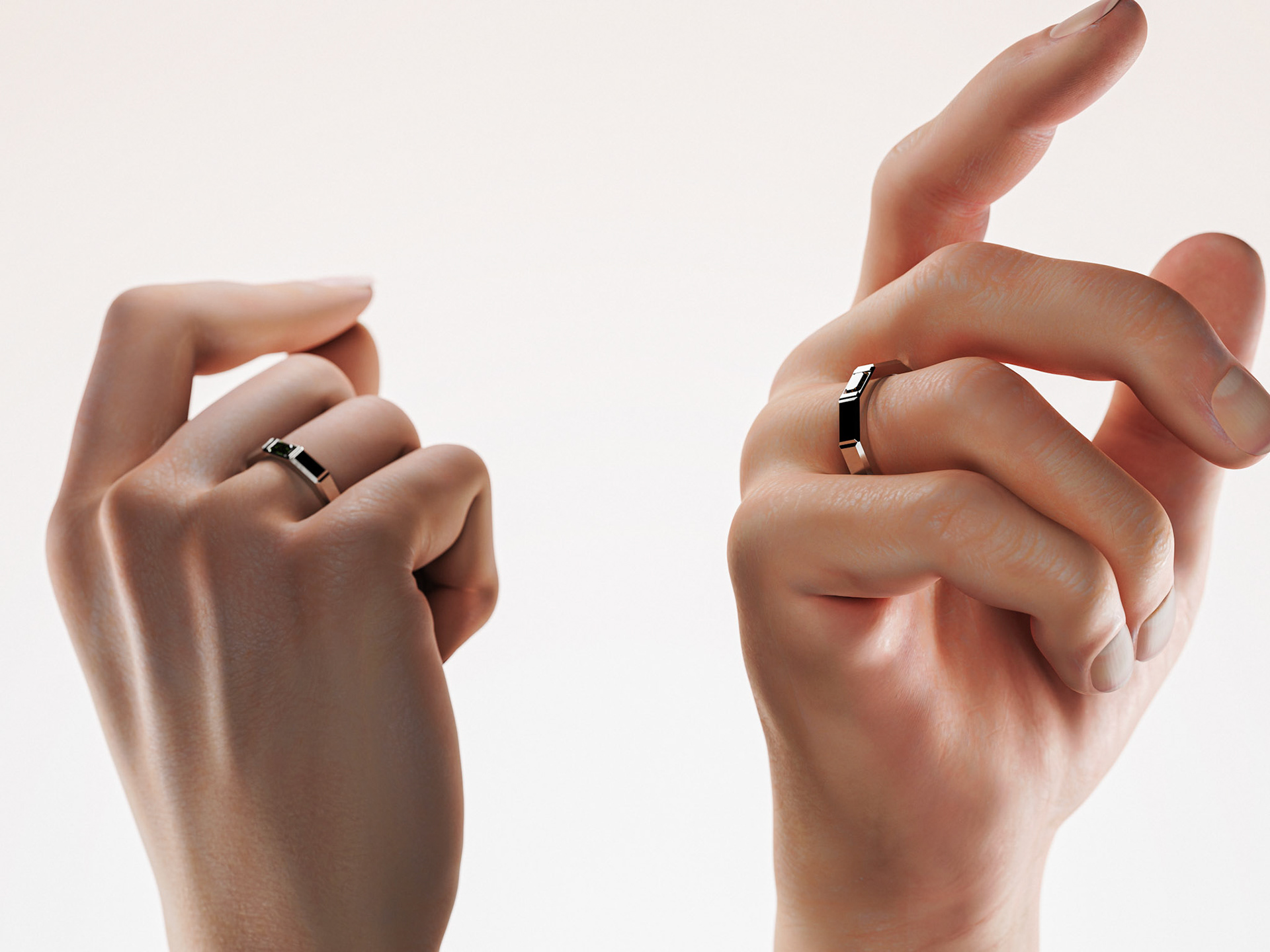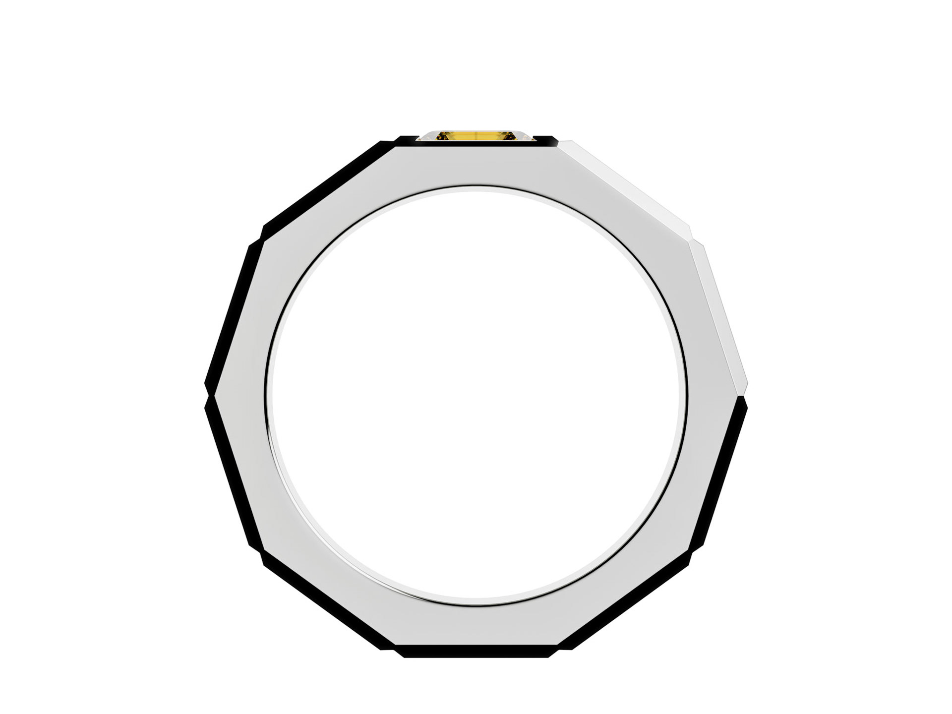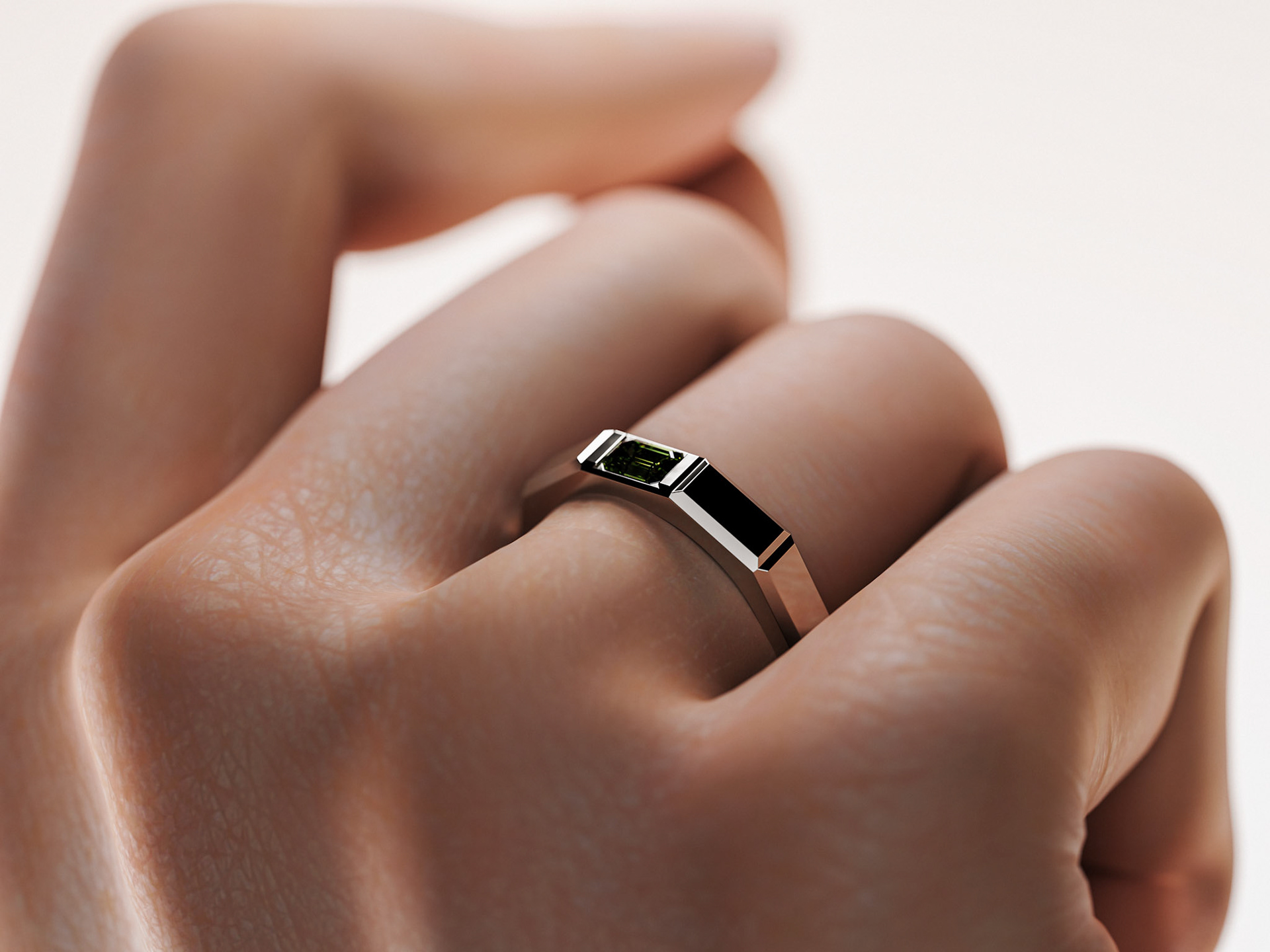 DIALECTRA, bague en titane sertie d’une pierre de centre de type rectangle en sapphire et/ou en topaze.