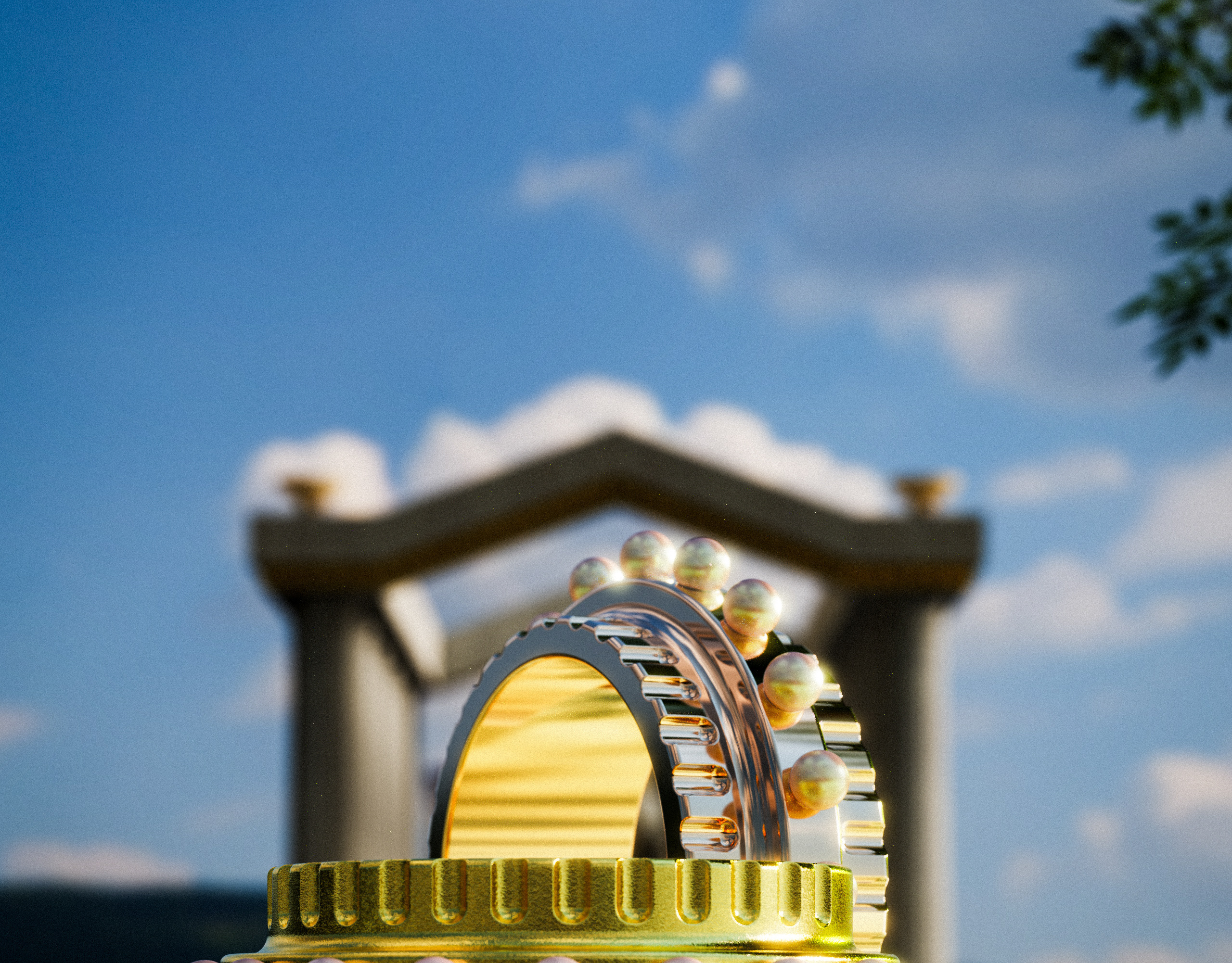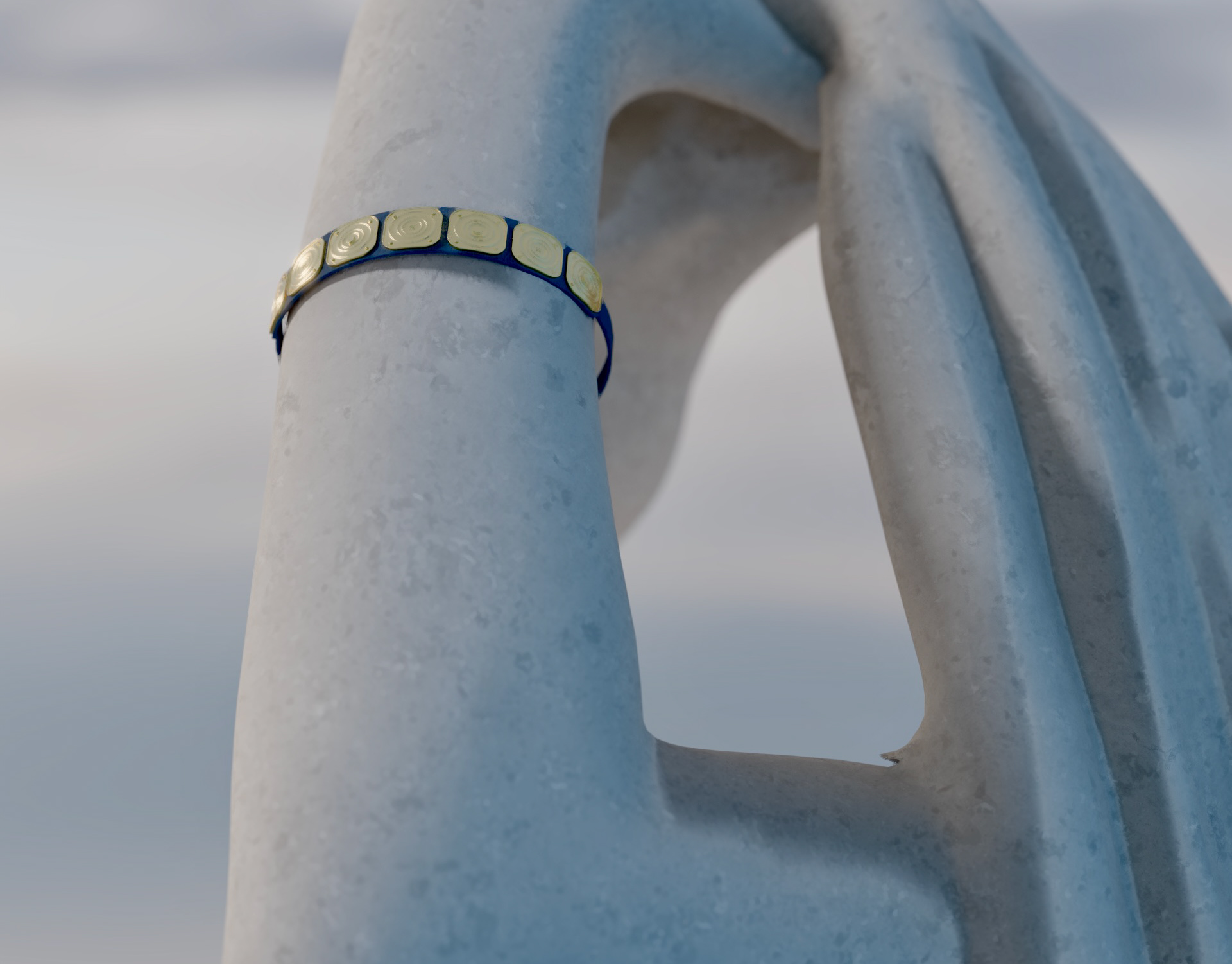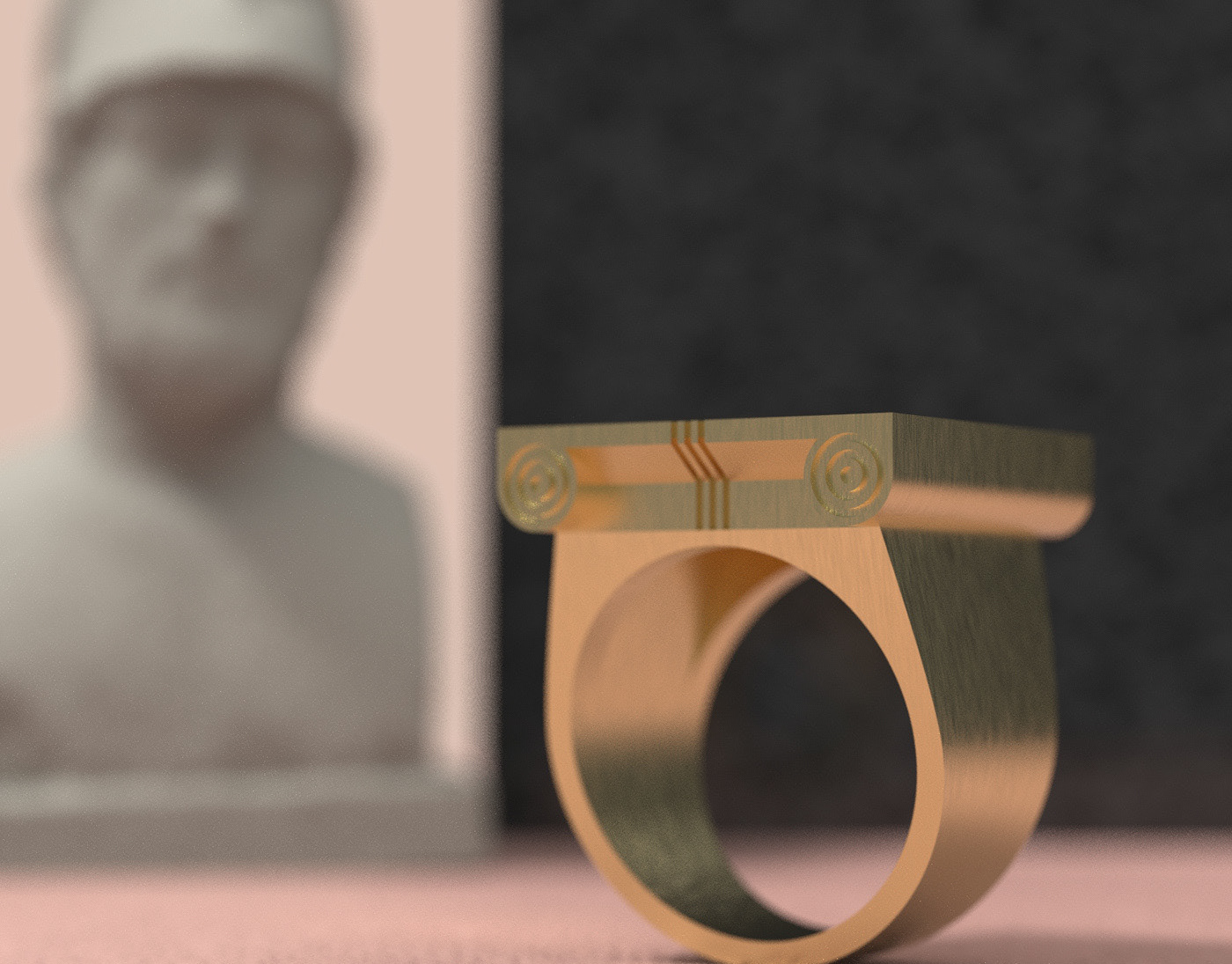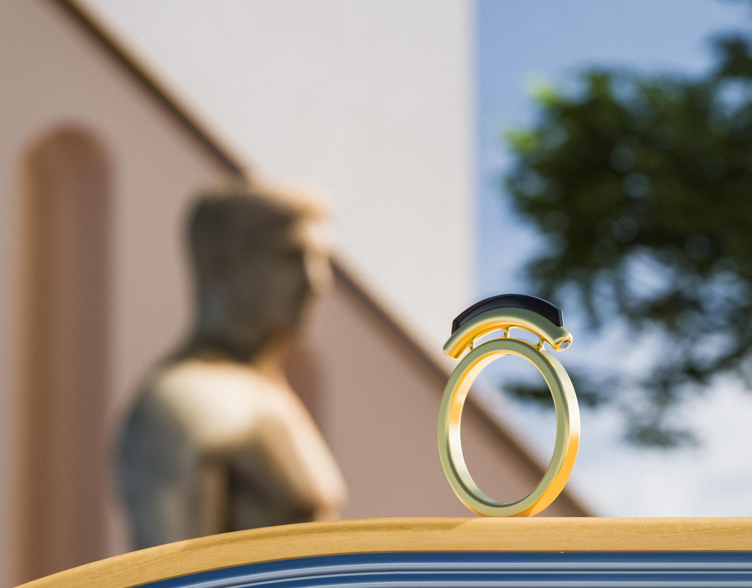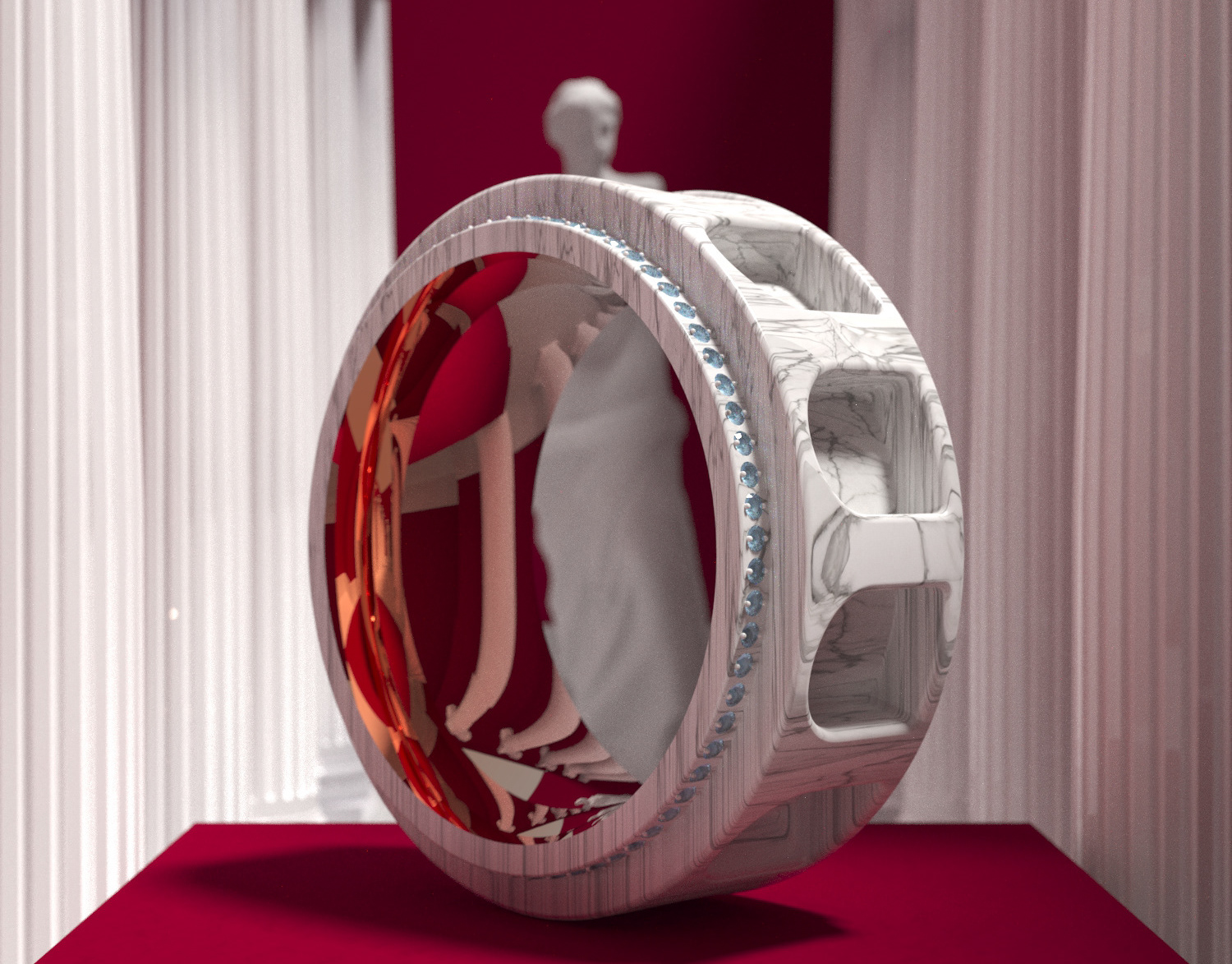 Pour ce projet, l’idée était d’intégrer la pierre de centre dans le motif du corps de la bague. Cela crée une impression de continuité.