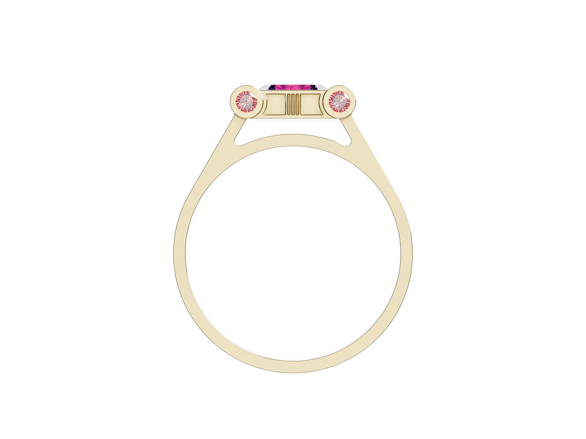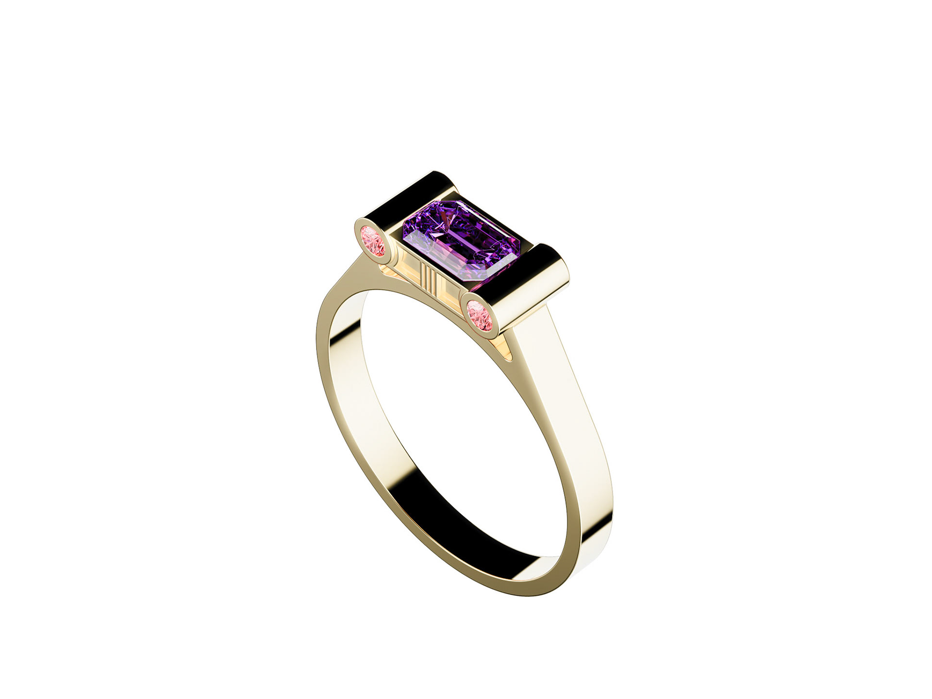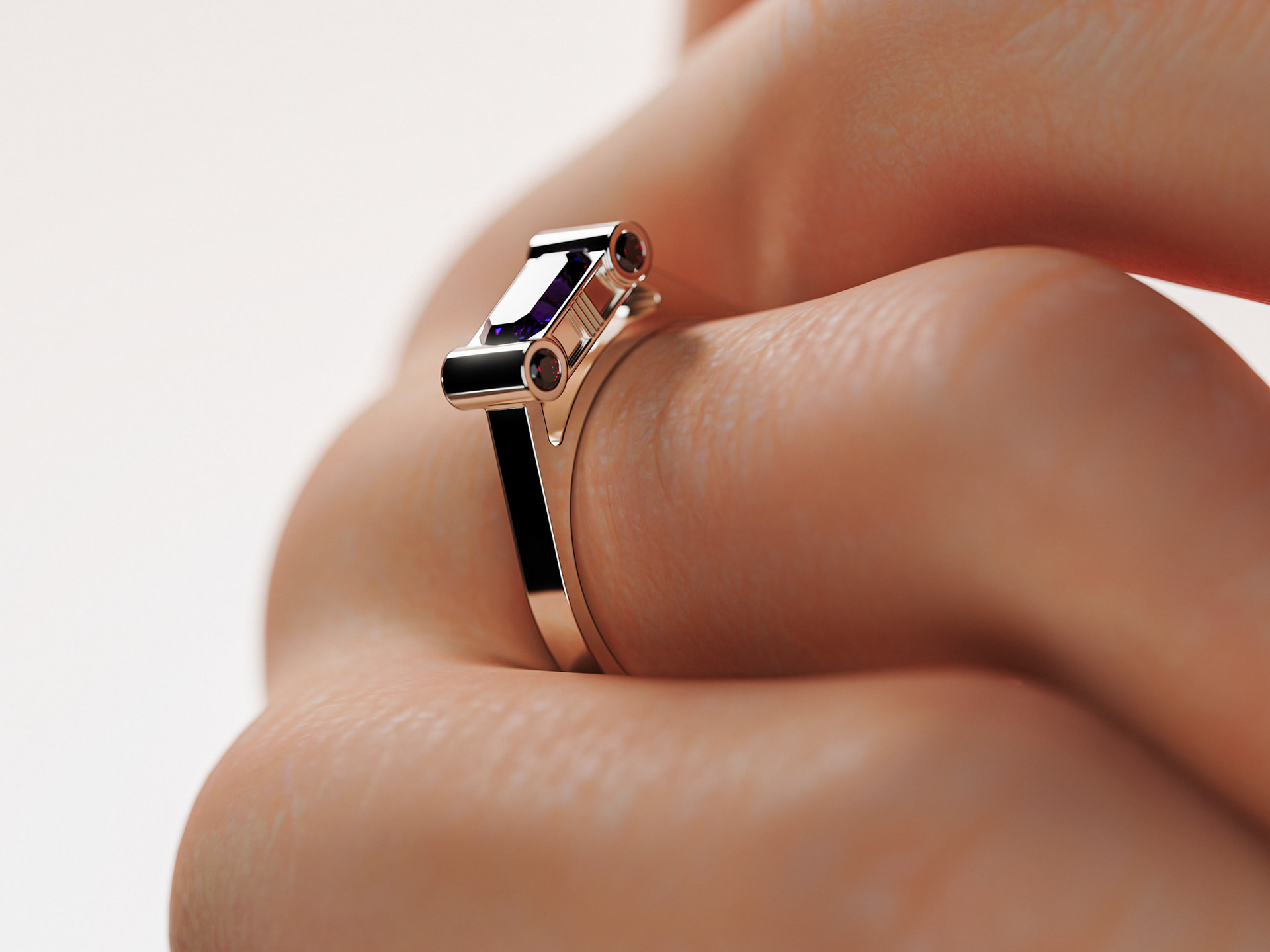 Voici IONA II, la toute première bague à être produite pour le studio. Cette version est maintenant à 95 % du modèle final, ce qui signifie que les proportions sont bien plus précises par rapport à notre première itération.Nous avons hâte de vous fournir davantage d'informations à ce sujet très prochainement. Cette magnifique bague est conçue en or jaune et est ornée de quatre diamants brillants de 2,50 mm chacun, ainsi que d'une pierre centrale mesurant 6x4 mm.